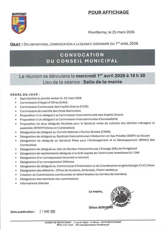 PROCHAINE SÉANCE DU CONSEIL MUNICIPAL