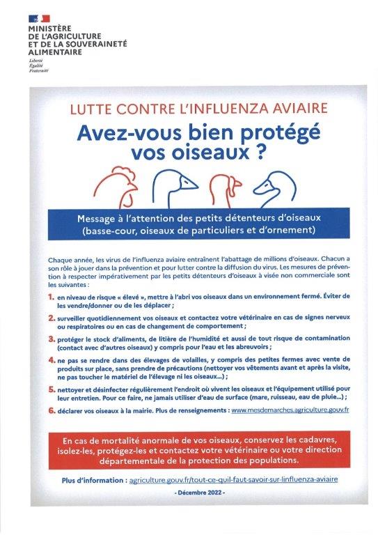 Face à cette évolution, le ministère de l’Agriculture, de l’Agroalimentaire et de la Souveraineté alimentaire a placé tout le territoire métropolitain en niveau de risque “élevé” depuis le 22 octobre 2025 (arrêté du 17 octobre 2025).